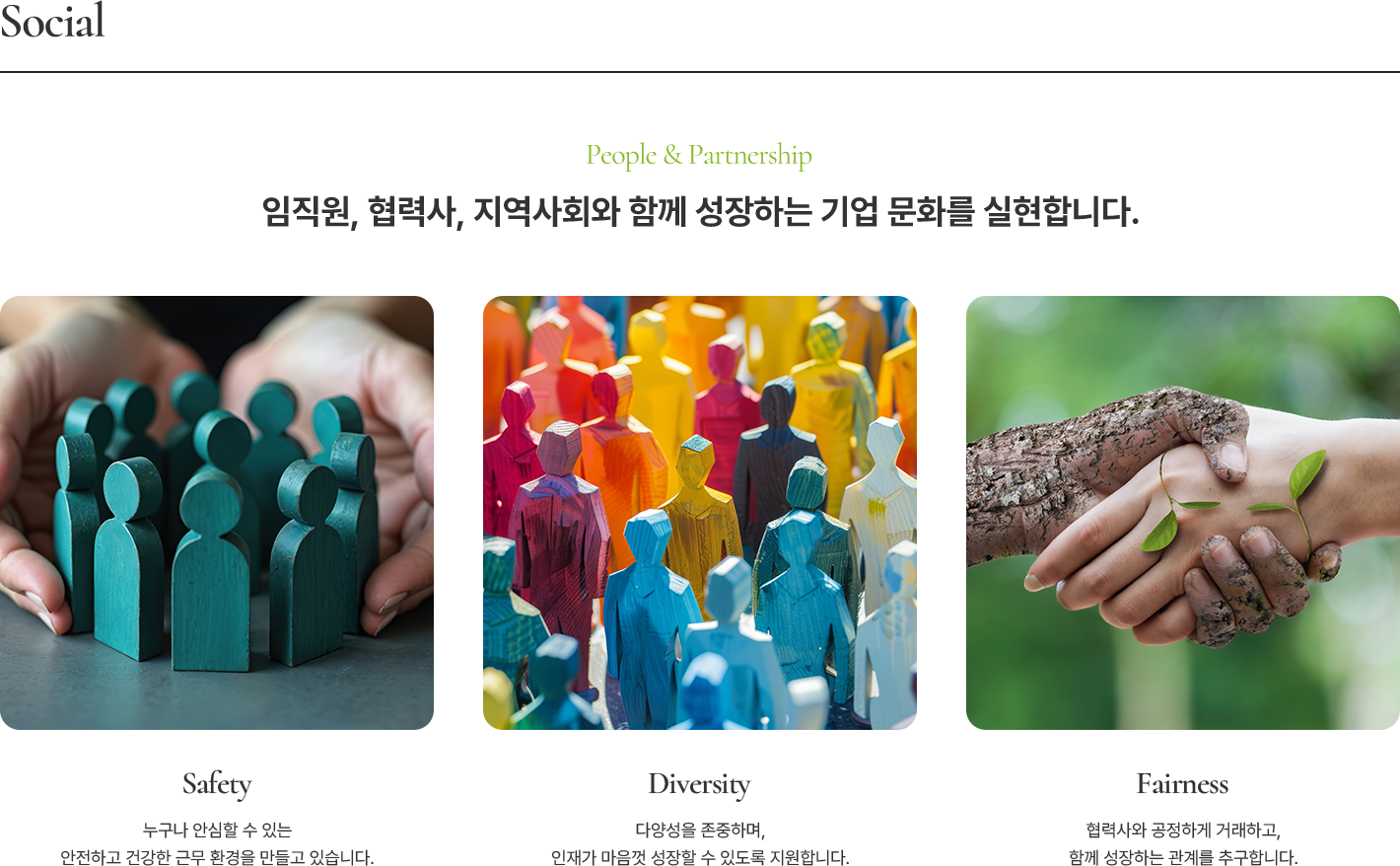 고객과 파트너, 지역사회와 함께 지속 가능한 가치를 창출합니다.