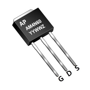 AM4N60RU : TO251 ■High Voltage : BVDSS =600V(Min.) ■Low Crss : Crss 6.3pF(Typ.) ■Low gate charge : Qg=12nC(Typ.) ■Low RDS(on) : RDS(on)=2.1Ω Typ, <2.5 ■Lower EMI noise ■100% Avalanche tested